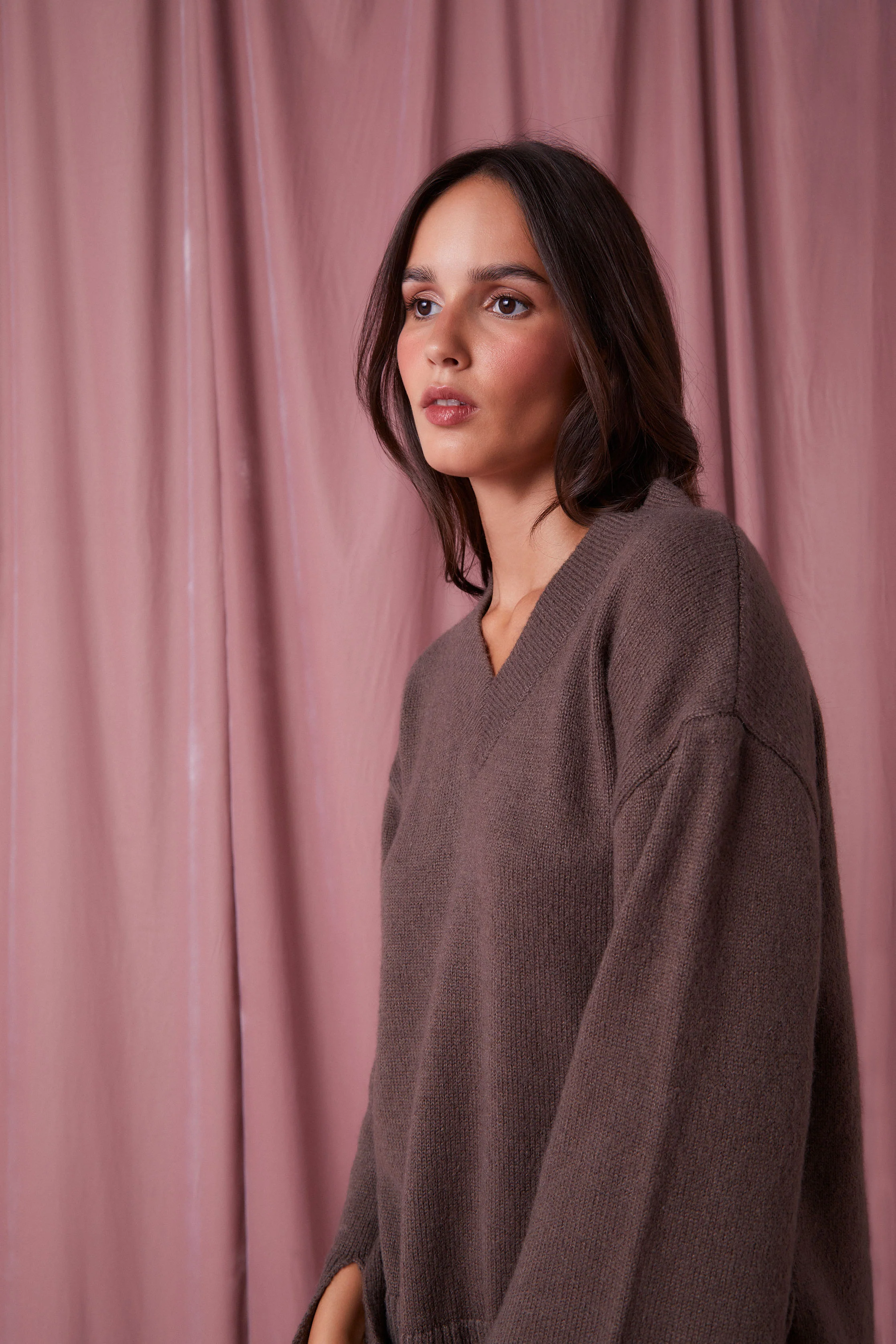 El jersey ARIANA combina comodidad y sofisticación. Su silueta oversized y alargada, junto con el escote en pico, crea un estilo relajado pero elegante, perfecto para los meses más frÃos.
